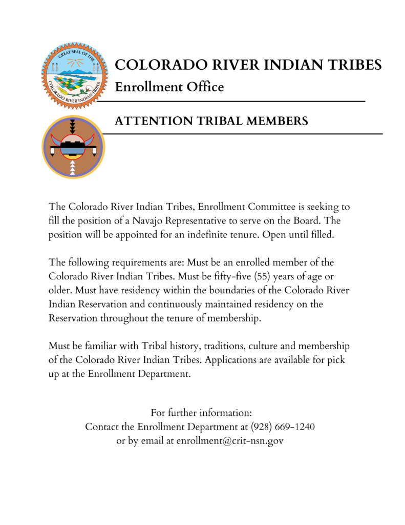 This resolution acknowledges the Colorado River as a living entity whose health and well-being are intrinsically linked to the well-being of the Colorado River Indian Tribes (CRIT) members. The Tribes’ deep-rooted connection to the river spans centuries, providing cultural identity, spiritual strength, food systems, and economic stability that continue to shape their community life today.