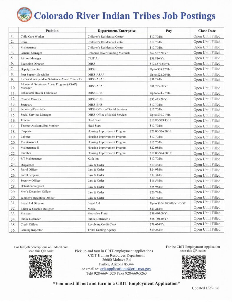 Mr. Quillen is a CRIT tribal member who was born and raised in the community. He brings both professional experience and a deep personal connection to the reservation into his new leadership role. He has worked for the Tribes for the past three years and has steadily grown within the department.