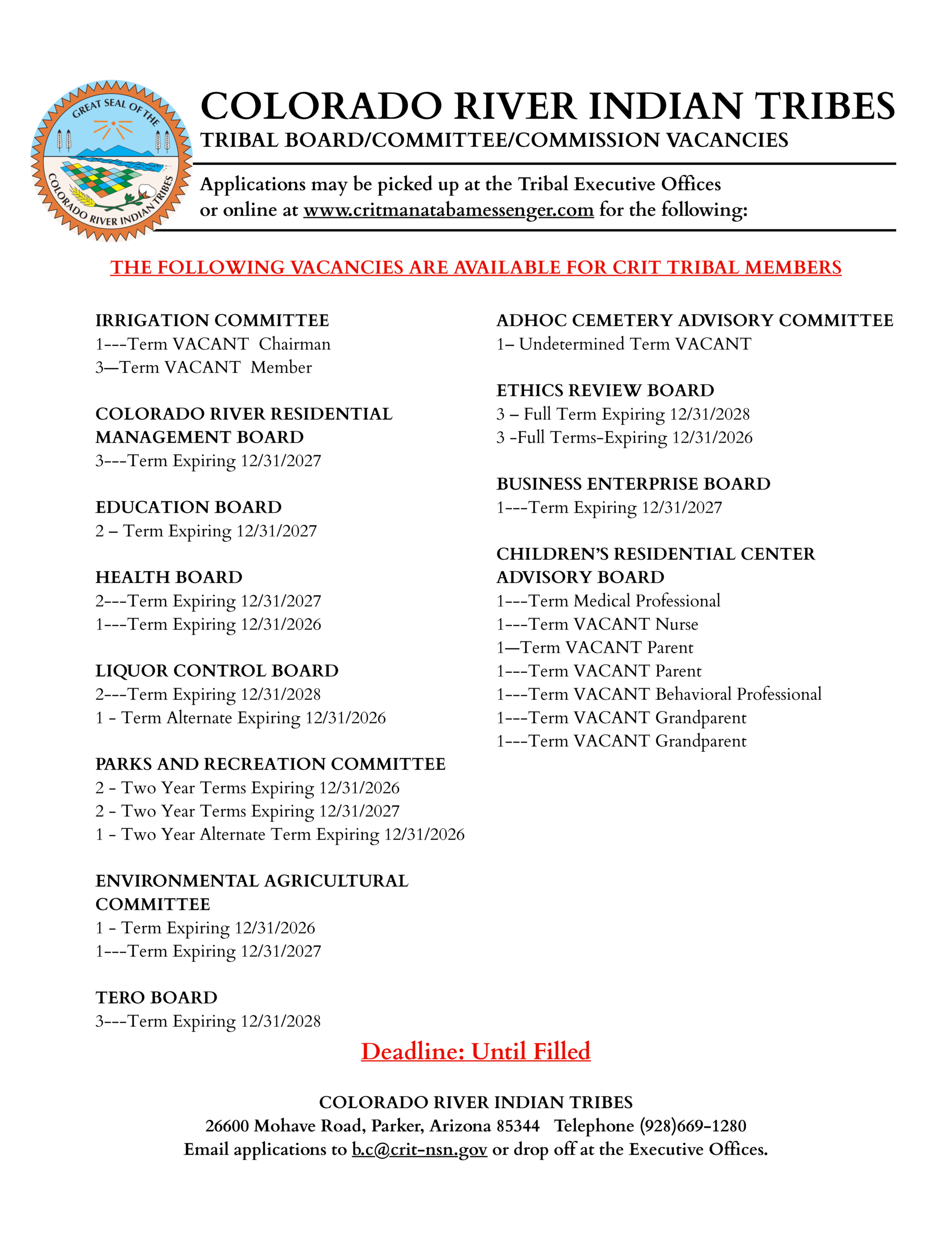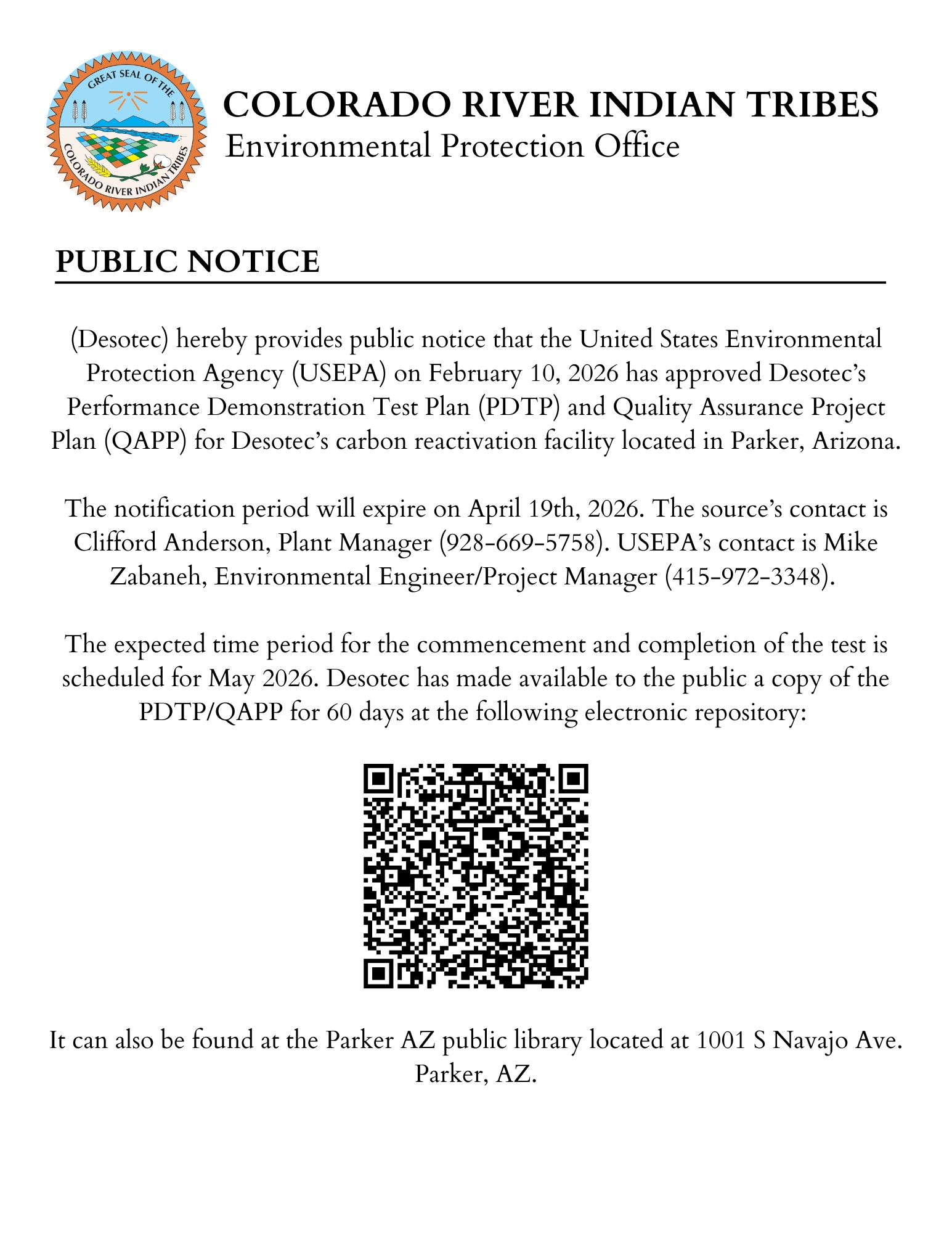 This project supports the continued care and functionality of CRIT’s irrigation system, which is vital to agricultural operations and stewardship of the Colorado River. Qualified contractors are encouraged to review the full Request for Proposals and submit by the stated deadline.