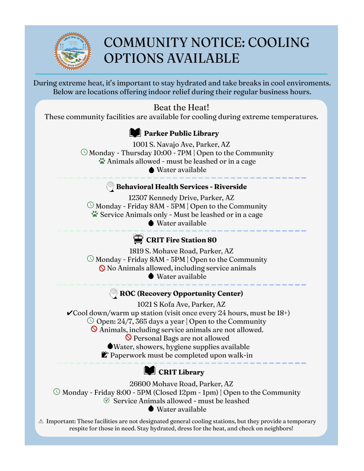 The Colorado River Indian Tribes (CRIT) is requesting proposals from qualified contractors for the renovation of a building located at 1405 S. Joshua Ave. in Parker, Arizona, which will serve as the future CRIT Broadband Operations Facility. The project will convert the existing structure into a secure, fully functional center to support CRIT’s expanding broadband network.
