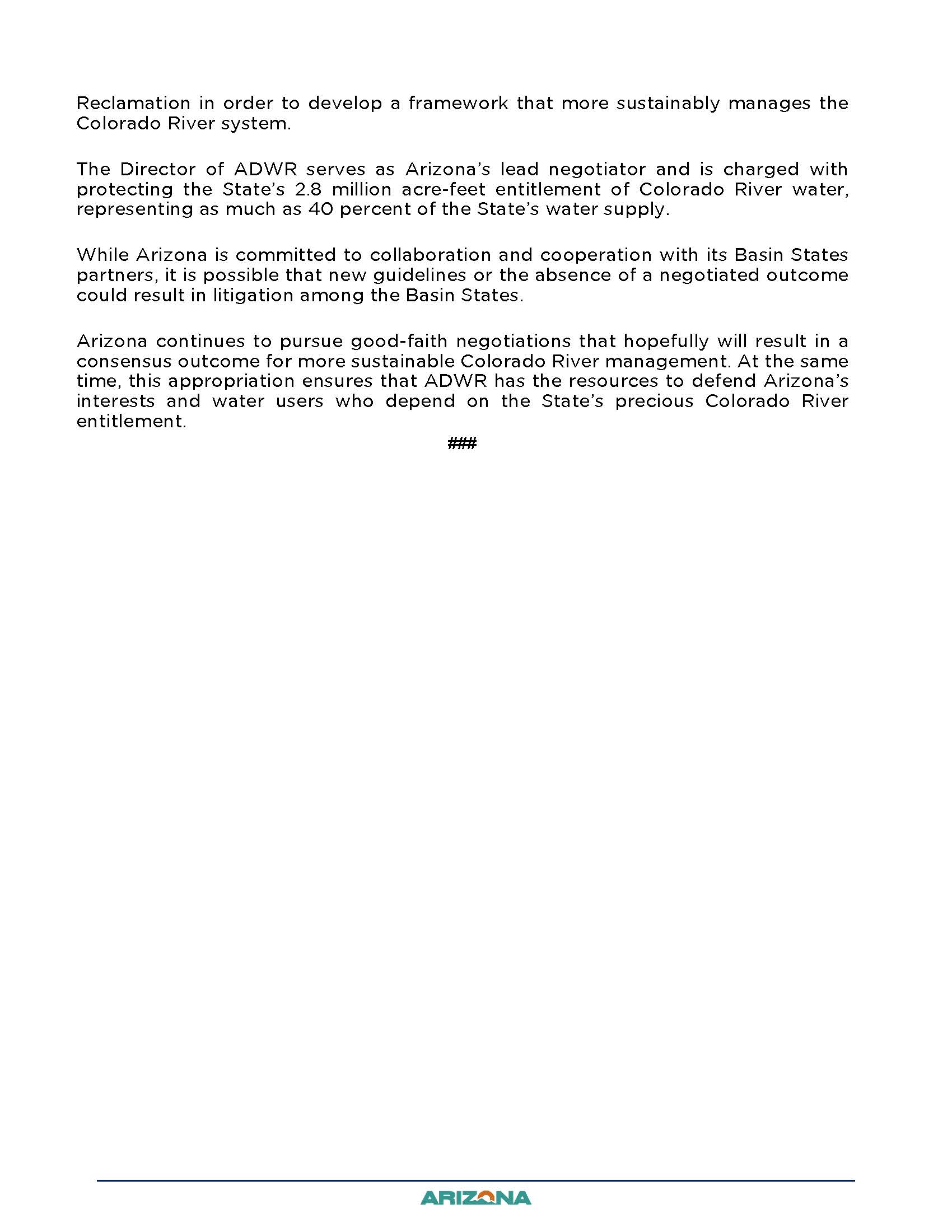 - A recognition that current Colorado River operating rules expire at the end of 2026, with negotiations underway to create a sustainable long-term framework.